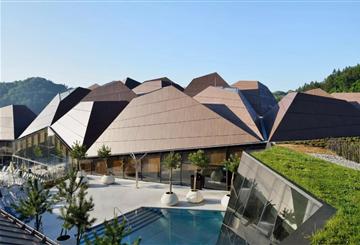Termalija 家庭健康中心,四面體屋頂群如同山間‘巨石’ / Enota