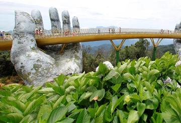 越南峴港群山中現‘大手’,托起150米‘金絲帶橋’