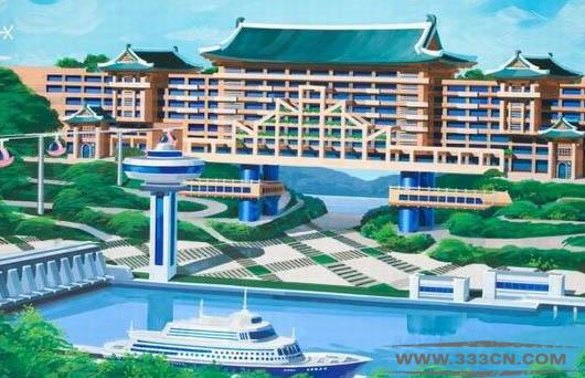 盡管很多設(shè)計(jì)已經(jīng)遠(yuǎn)遠(yuǎn)脫離了現(xiàn)實(shí)基礎(chǔ),但相比已建成的建筑有了巨大的飛躍,建筑師們相信這在未來是可能實(shí)現(xiàn)的。其中有一張圖展示的是建在南浦港口西海攔水壩上的一家酒店和一艘豪華游輪,而在現(xiàn)實(shí)中,目前該地區(qū)并沒有完備的住宿設(shè)施。