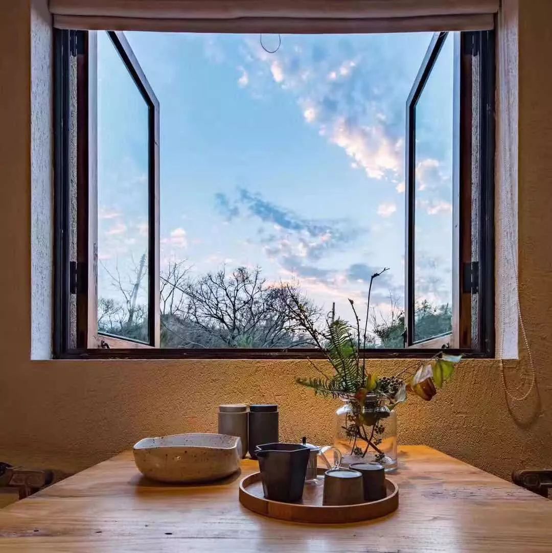 人臥在床上就能看到外面的山色