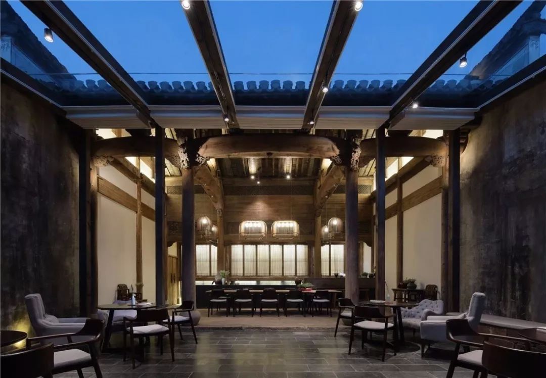 設計亮點:修復而非建造的理念。保留“四水歸堂”的天井格局。通過玻璃墻、天窗的運用將原本陰暗的澍德堂變得明亮、通透。隱藏現代設備,以原木色為主,用徽州黟縣的天然石材——黟縣青、竹木等天然材料,讓老宅變得生機勃勃。溫和的******燈光與竹飾燈具結合,營造家的溫馨感。