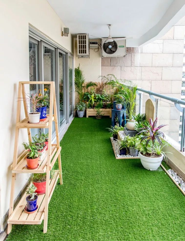 ▲ 給陽臺鋪上人工草坪,打理起來會更加方便,而且這滿目清新的色調,仿佛一下子把你拉進了大自然。