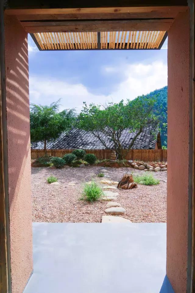 紅豆別院原是酉田村老書記的家,庭院正對著一雌一雄兩棵百年紅豆杉,紅豆別院也由此得名。帶有東方氣息的庭院,寫滿了禪意,這小別墅可同時住兩戶人家。