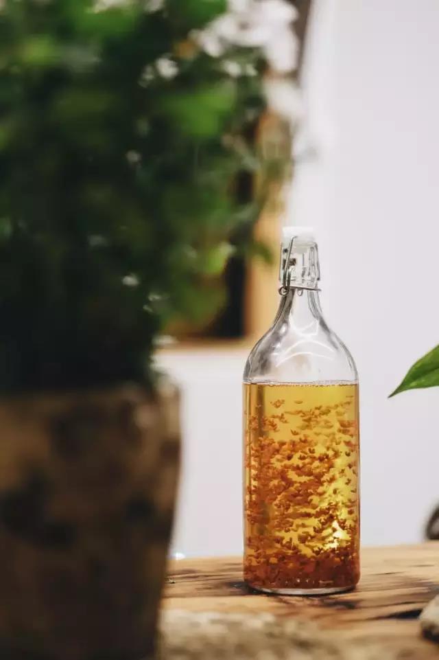 房前的桂花開了,就把它釀成桂花酒,夜晚可以舉杯邀明月,天上的嫦娥和吳剛,共飲一杯否?