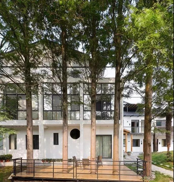 “施工的過程中,有一次爬上屋脊,正好趕上太陽快要下山的時候,陽光照著竹林,我站在屋頂上望過去,風光獨好,腦子突然有了一個新的想法。”