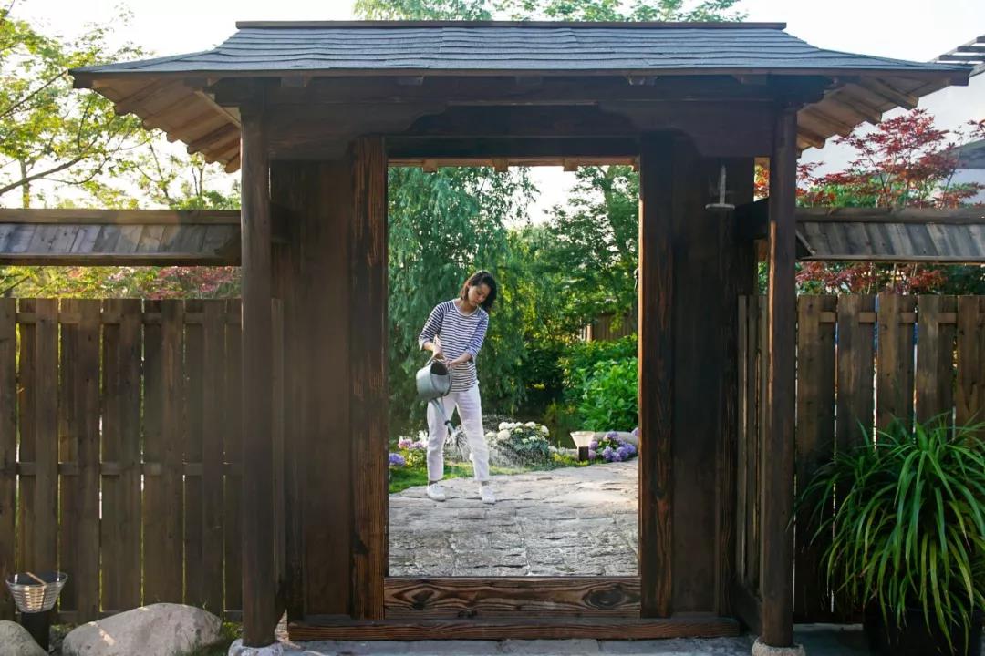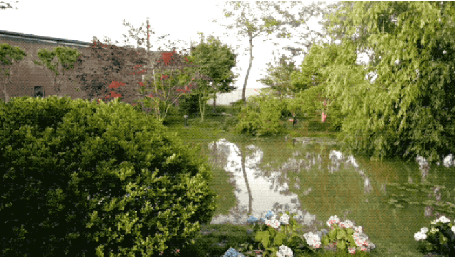 池塘一圈種滿了繡球花,用廢舊窗子搭的花架,爬滿了兩年前種下的月季花。