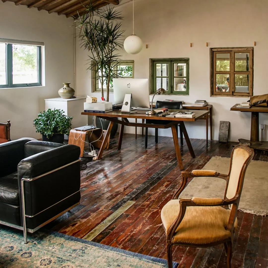 他們夫妻倆常常畫畫,隨時腳上都帶著顏料,或是花園里踩的泥巴,踩在老地板上,更加的隨意、自在、肆無忌憚、沒那種新地板帶來的拘束感。