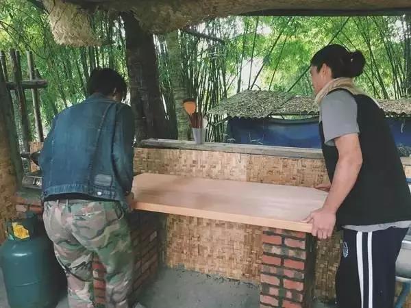 裝飾棚頂,堆砌灶臺吧臺