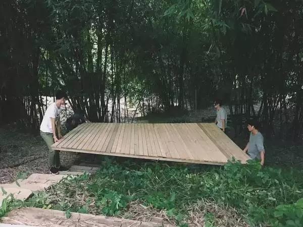 鋪上防腐木板、搭建帳篷