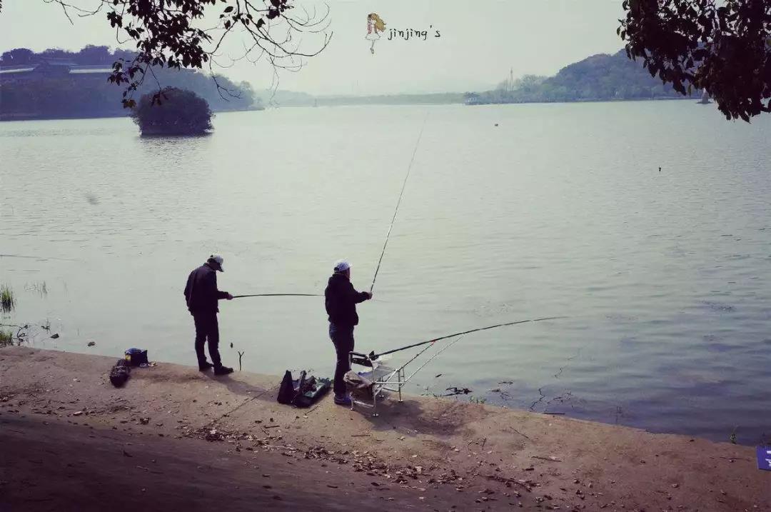 韓權和朋友在江邊釣魚