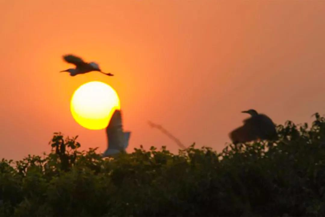 這里原先是一片農(nóng)田,一棵樹都沒有,爸爸種樹五六年后,引來一群鷺鳥停留。