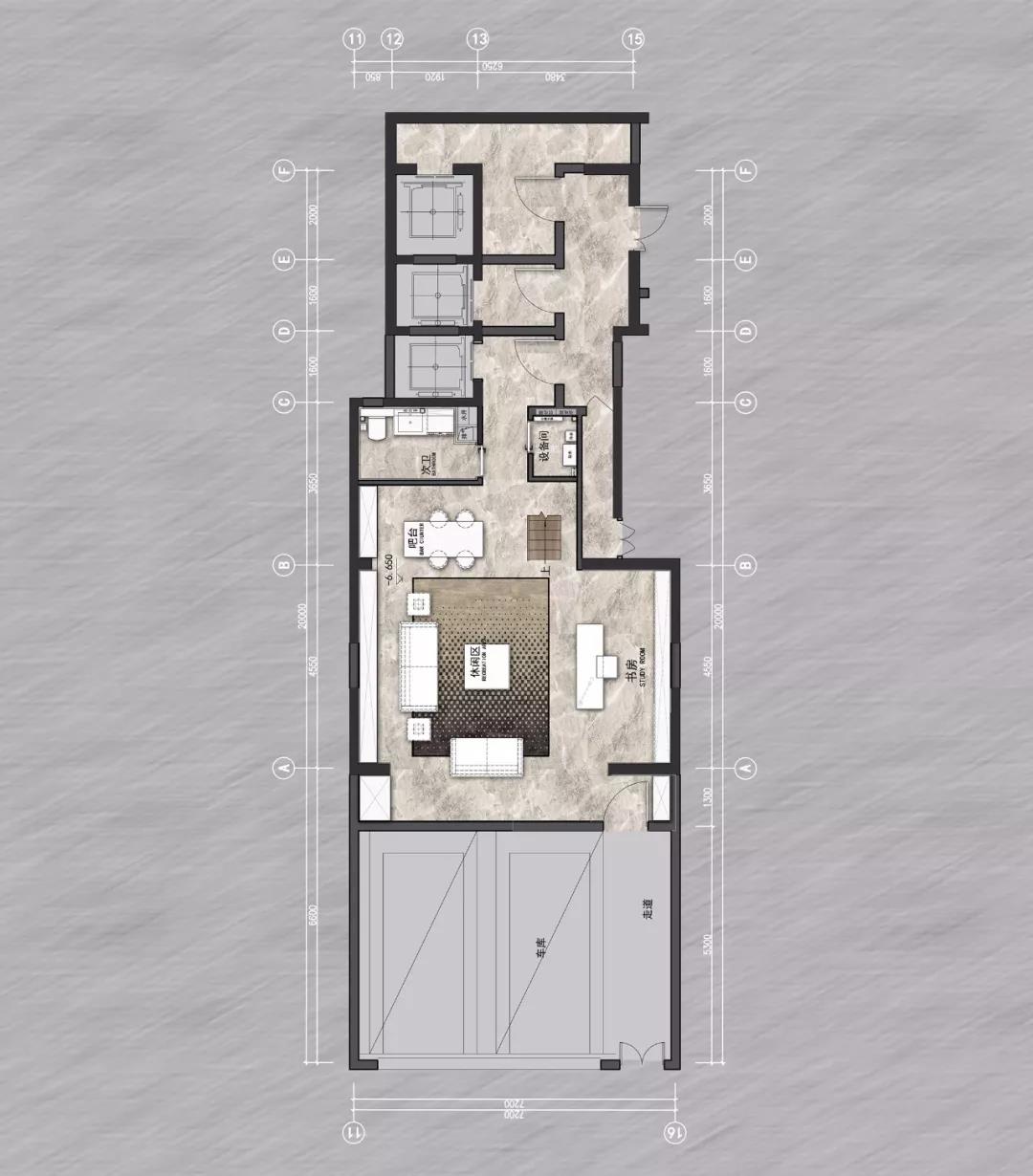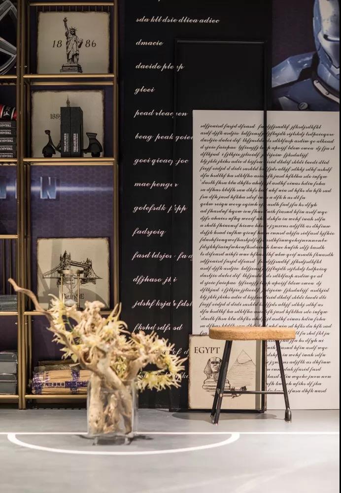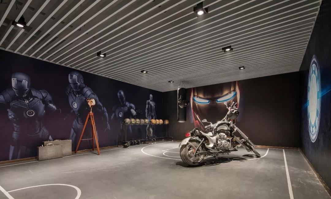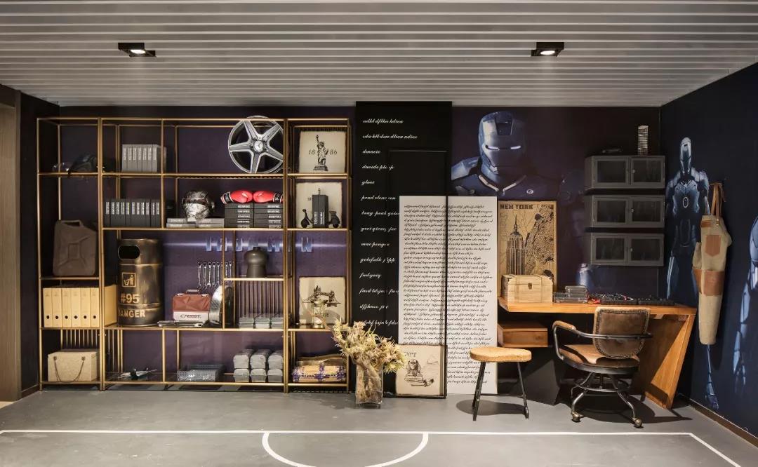 沿樓梯到地下室,一個跳脫常規(guī)的空間戲劇正在上演??苹酶信c后現(xiàn)代氣息交融,鋼鐵俠是主要陳列元素,還特設(shè)有一個小型吧臺,空間功能介入臥室與客廳之間,可容納無限想象和更多的空間記憶。