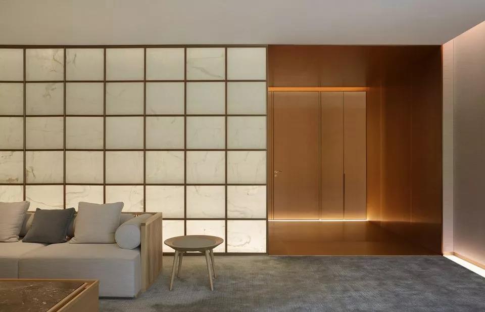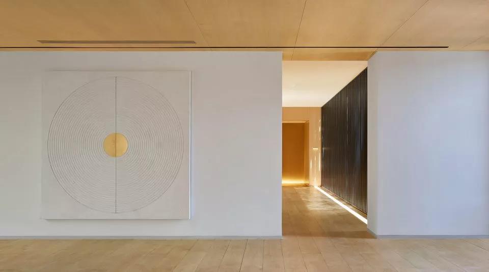 設計的過程中,把建筑作為一種詩意的想象,盡力在作品中滲透對于人性孤獨的泰然自若。我們刻意回避了偏商務的色調,使得進入空間的人有一種賓至如歸的感覺。極少主義很容易走向高冷,為了避免冷漠,注重材料的色彩和質地,一方面,選擇了很淺很淡的木飾面和地板,使得整體的空間氛圍顯得輕松自在;另一方面,引入“透光的紙”,讓光線顯得柔和與溫暖,顯得“很歡迎”。這一切所得均來自于一次與業主的談話:“我希望這個空間像人!一個沒有軟肋但也沒有鎧甲的人,雅致而且從容!”