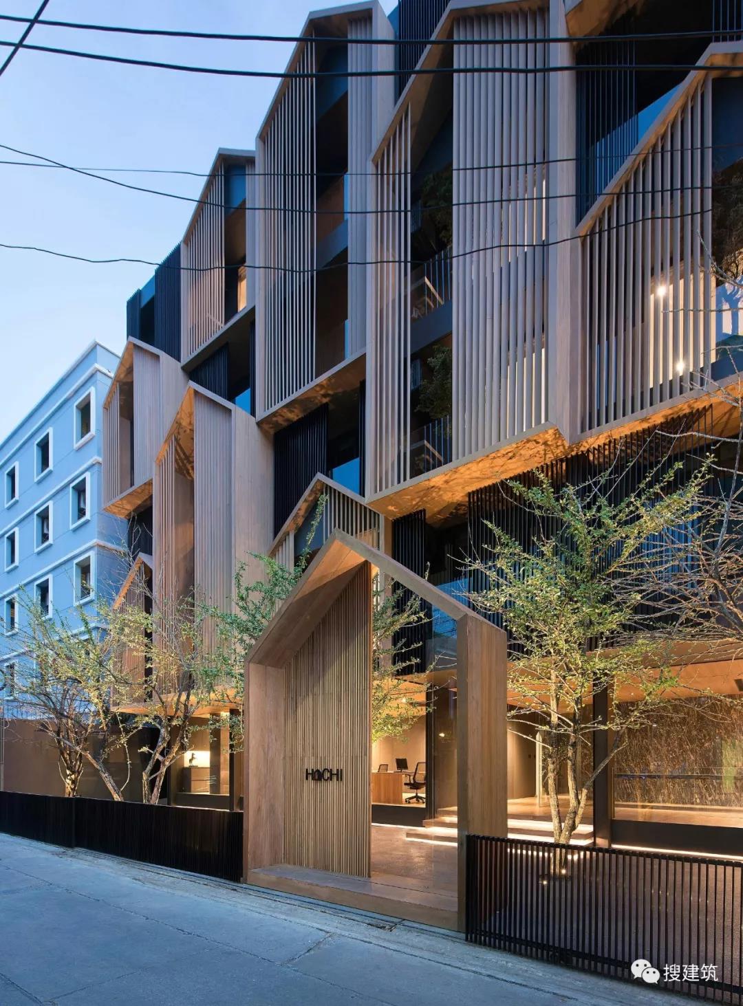 HACHI是一家現代服務月租制的公寓,位于曼谷Ladprao的商業區,周圍環繞著非常擁擠的城市住宅,辦公樓和傳統公寓。這家服務式公寓由34間豪華客房組成,面積為26-44平方米。每個房間都有辦公室和多功能廳。因此,該建筑將擴建到5層,總建筑面積為1,100平方米。