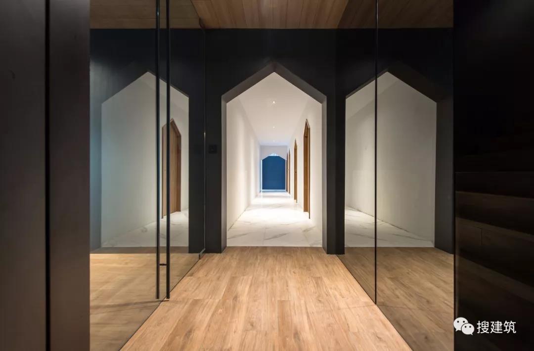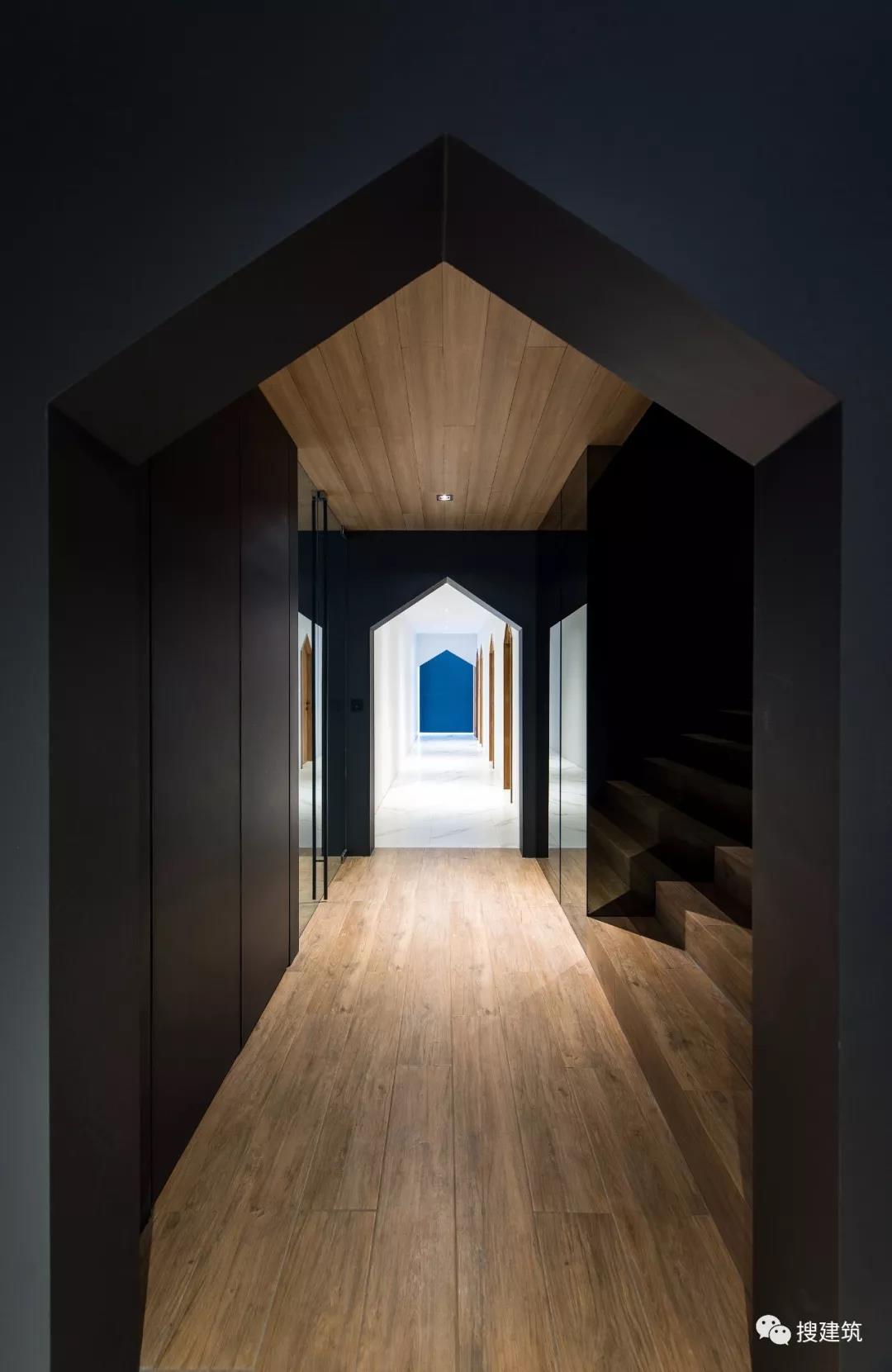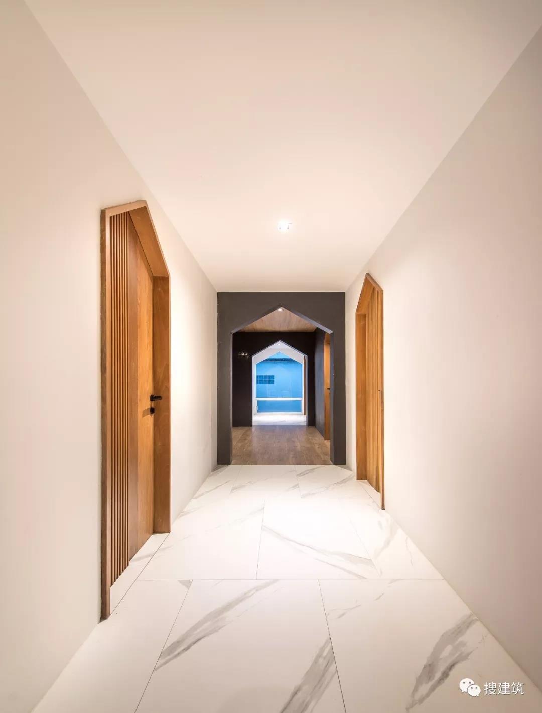 室內空間的靈感來自類似古代東方人的觀念,他們按順序劃分每個活動空間。同樣地,每個內部空間都有一個情感設計,由山墻拱門分隔,這些拱門與外部通道相連,可以從入口到樓梯廳和走廊的明亮和黑暗區域來切換,給住戶不同的感受。