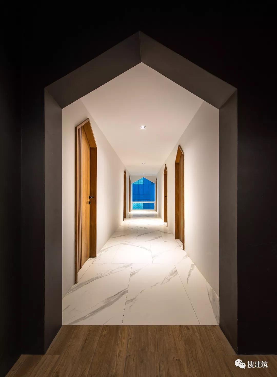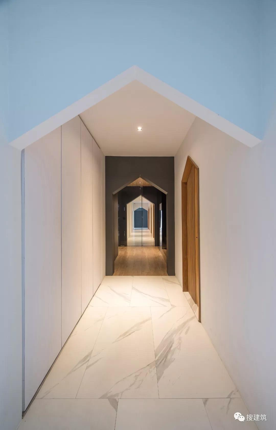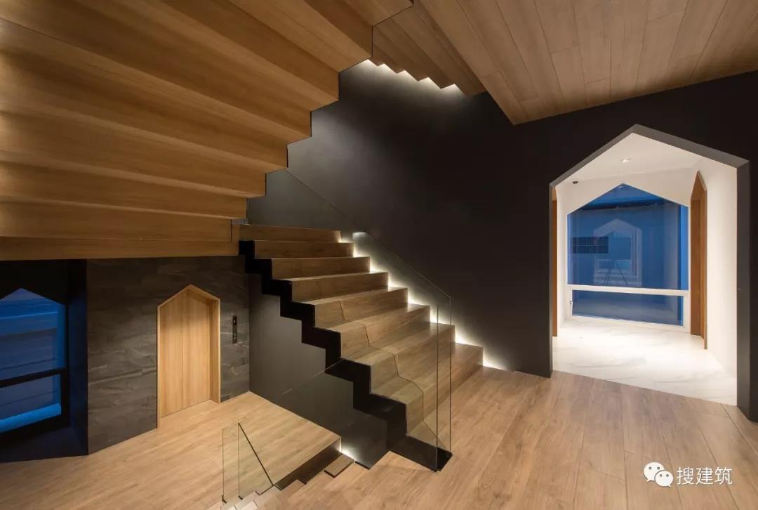 室內空間的靈感來自類似古代東方人的觀念,他們按順序劃分每個活動空間。同樣地,每個內部空間都有一個情感設計,由山墻拱門分隔,這些拱門與外部通道相連,可以從入口到樓梯廳和走廊的明亮和黑暗區域來切換,給住戶不同的感受。