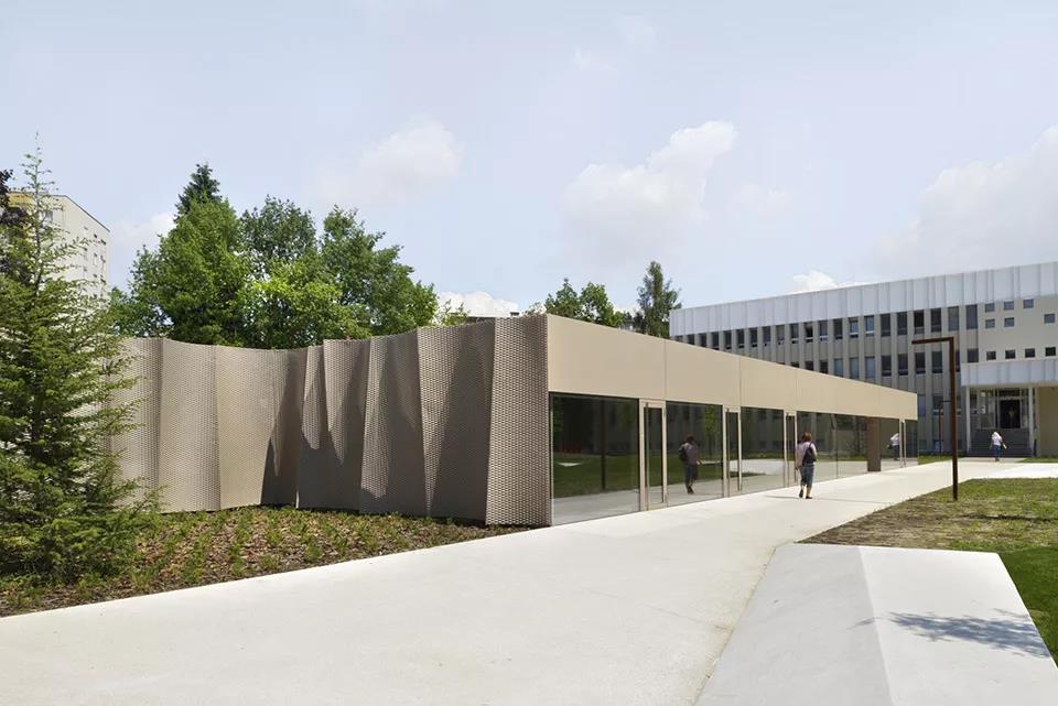 微微暖調(diào)的金屬外殼幾乎完全覆蓋建筑