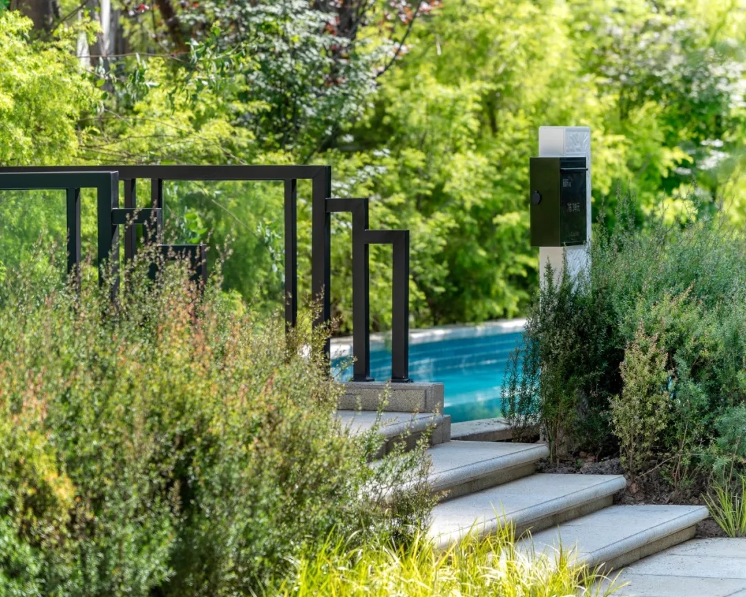 以細致手法打造南歐度假風情園林,營造奢華度假式的園林景觀。南歐度假景觀講求景觀搭配的中軸對稱,步移景異,歐陸式迭水噴泉、度假式泳池景觀、大草坪與園林小徑在建筑間合理地分布,以四重園林景觀、多重水系和景觀節點營造一年365天的度假風情。