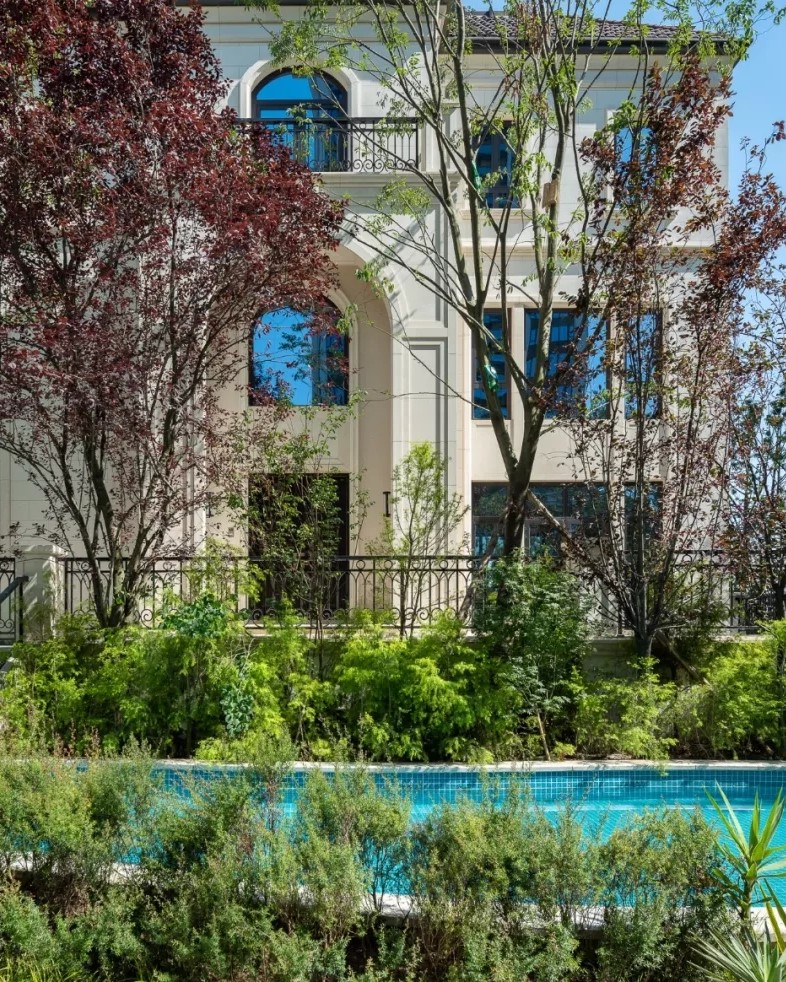 法式建筑的特點,就是對建筑的整體把握之外,善于在細節雕琢上下工夫。它是一種基于對理想情景的考慮,追求建筑的詩意般意境,力求給人深度的感染。在蔚藍軒,新古典主義法式建筑與景觀、水景自然融合。