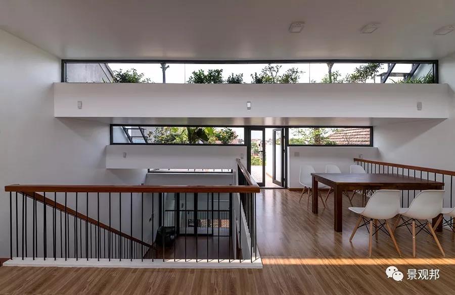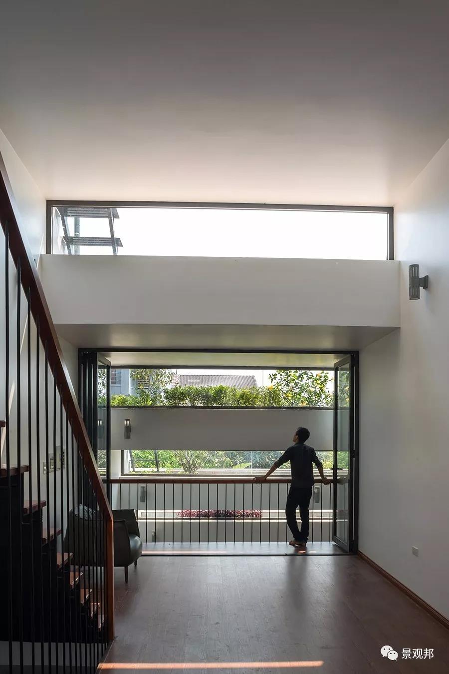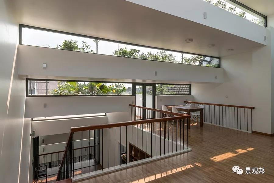 “梯田”高差出開了長條形采光窗戶,透過玻璃可看到屋頂?shù)姆N植、天空;光影照進來,室內(nèi)外無縫與自然對接。