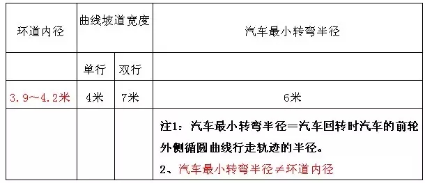避免:誤將國家規定的汽車的最小轉彎半徑6米,理解為是車道的最小內徑,導致車道的內徑過大,相應的增加車庫面積。