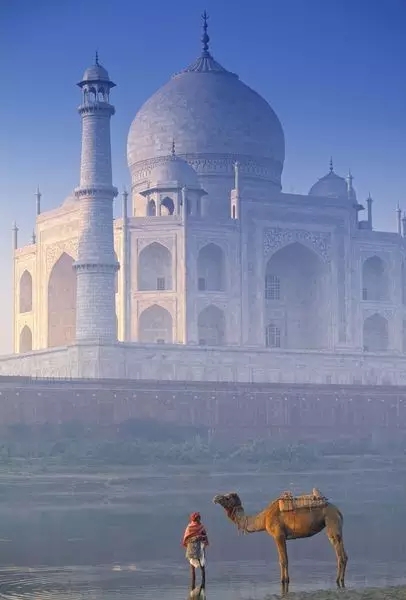 印度詩人泰戈爾曾用“永恒面頰上的一滴淚珠”道盡了泰姬陵背后凄美的愛情故事。泰姬陵,全稱為"泰姬·瑪哈爾陵",是世界七大奇跡之一。1631年莫臥兒皇帝沙賈汗的皇后馬哈爾死于難產,時年39歲。當時沙賈漢極度傷心,據說一夜間白了頭。為了紀念他心愛的妃子,他于1631年至1653年間為她在阿格拉修建了泰姬陵。