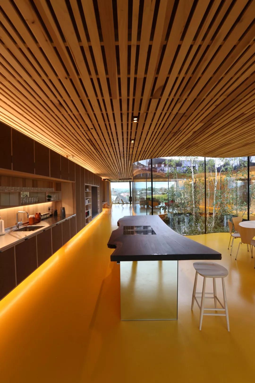 并且用曲線型的玻璃作為其隔墻