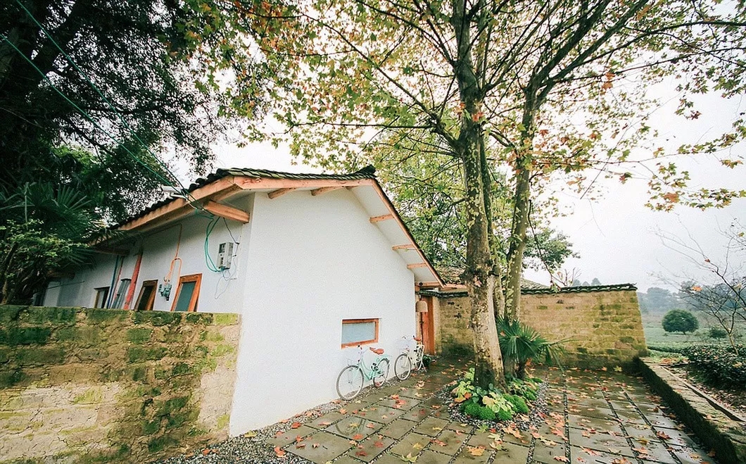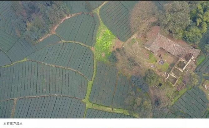小茶院誕生于雅安名山騎龍村的一棟廢舊宅基地之上。名山是毗鄰成都的著名茶鄉(xiāng),當(dāng)?shù)卮迕袷来苑N茶為業(yè),其丘陵狀地貌間處處是一年常綠的橫縱茶田。設(shè)計師同時也是民宿的合伙人特意挑選了這樣一處位于出門見山、回頭望村的地址,期望民宿可以成為鄉(xiāng)與野之間的一種紐帶。