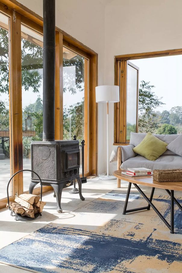 軟裝與配飾同樣遵循著新與舊的沖撞,帶有八十年代懷舊感的壁爐、暖壺、石磨與現(xiàn)代家具混合搭配。