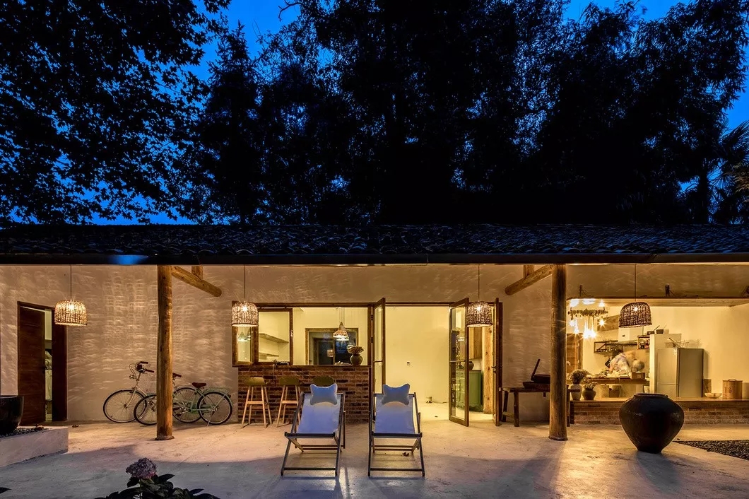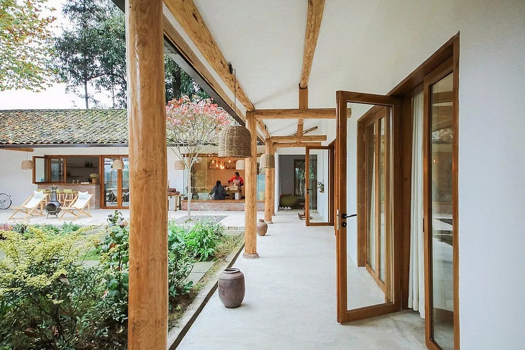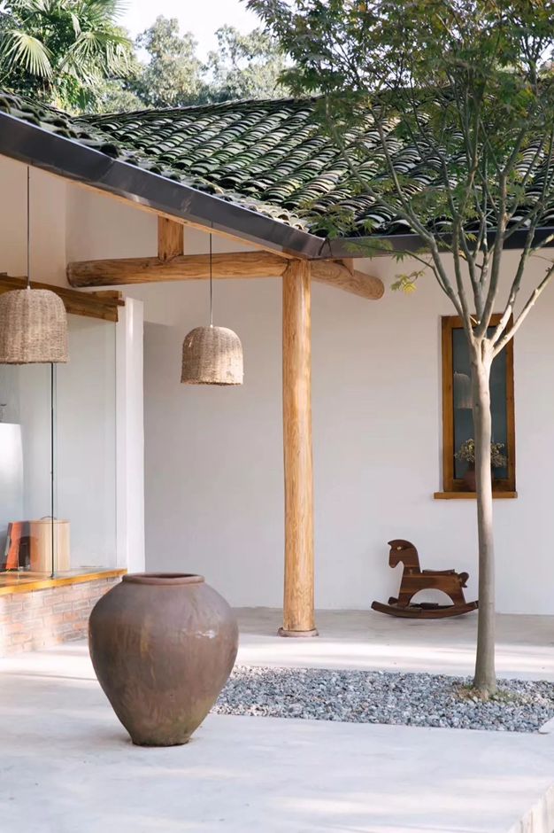 設(shè)計師希望院落打造為生于斯但不同于斯的獨特風(fēng)格:木結(jié)構(gòu)托生于當(dāng)?shù)貍鹘y(tǒng)民居做法,但柱不再是唯一承重體,從節(jié)約材料、增大空間的角度出發(fā),砌塊墻體替代了部分柱的結(jié)構(gòu)功能,但并不影響立面的通透效果。