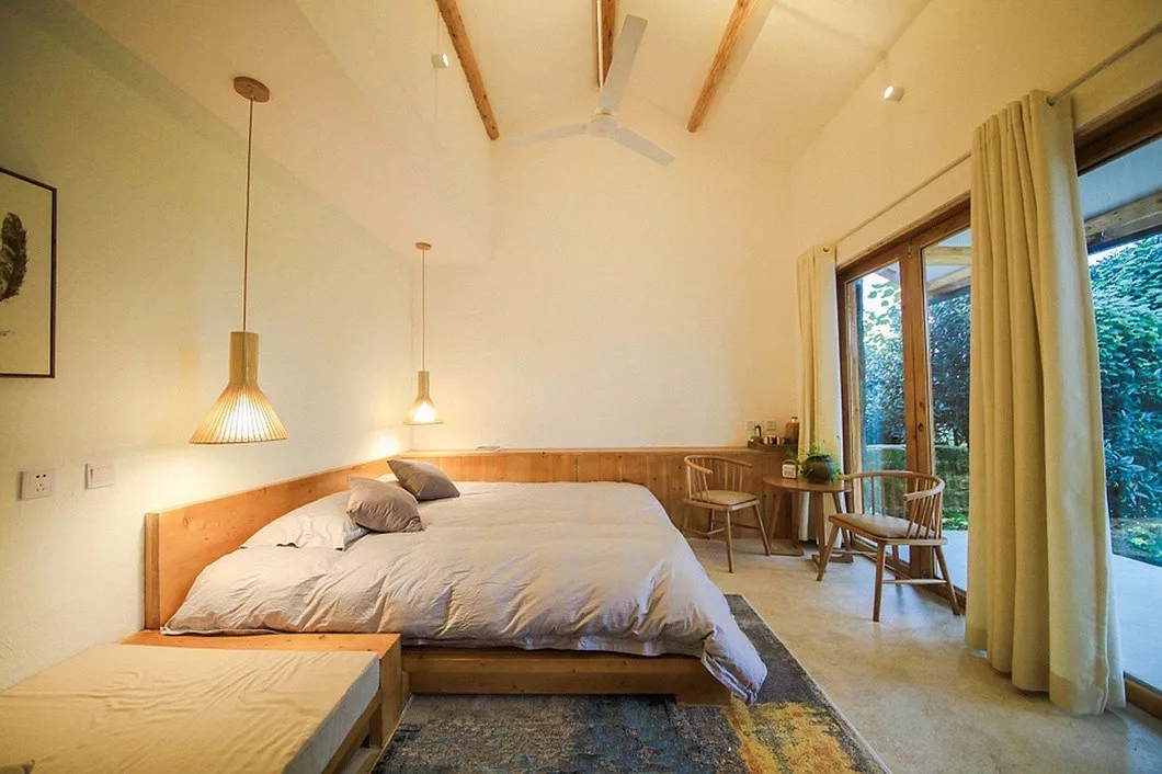 小茶院里,只有三間客房,房間簡潔古樸,冬暖夏涼,雖然算不上精致,但是空調(diào),地暖,吊扇都已具備。