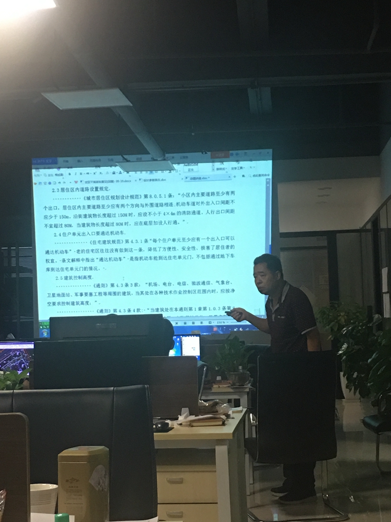 總圖設計要同時滿足主體工藝流程、滿足開發者要求,滿足政府部門提出的各項規劃要點、用地指標及建筑容積率,滿足國家、地方、行業等各種規范規定、城市道路交通規則,還要管線道路短捷、交通出行便利、人車分流合理、消防安全可靠等一系列問題。針對這些總圖上出現的難點,總工趙軍選和汪永權都進行了一一的講解與分析,指出了畫總圖的線條粗、細、深、淺,內容表達主、次關系等應如何運用與區分,。并提出如做設計過程中碰到需要其他專家配合或調研的,都可找兩位專家幫助。