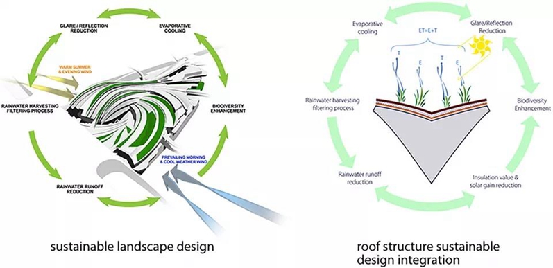 設計鼓勵并引導人們登上車站的屋頂,置身于郁郁蔥蔥的樹木和灌木從,享受全新的景觀,并與城市建立新的聯系。