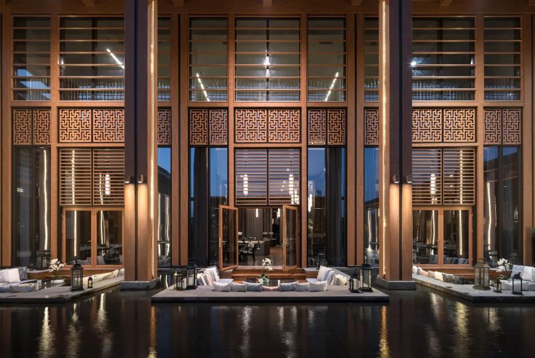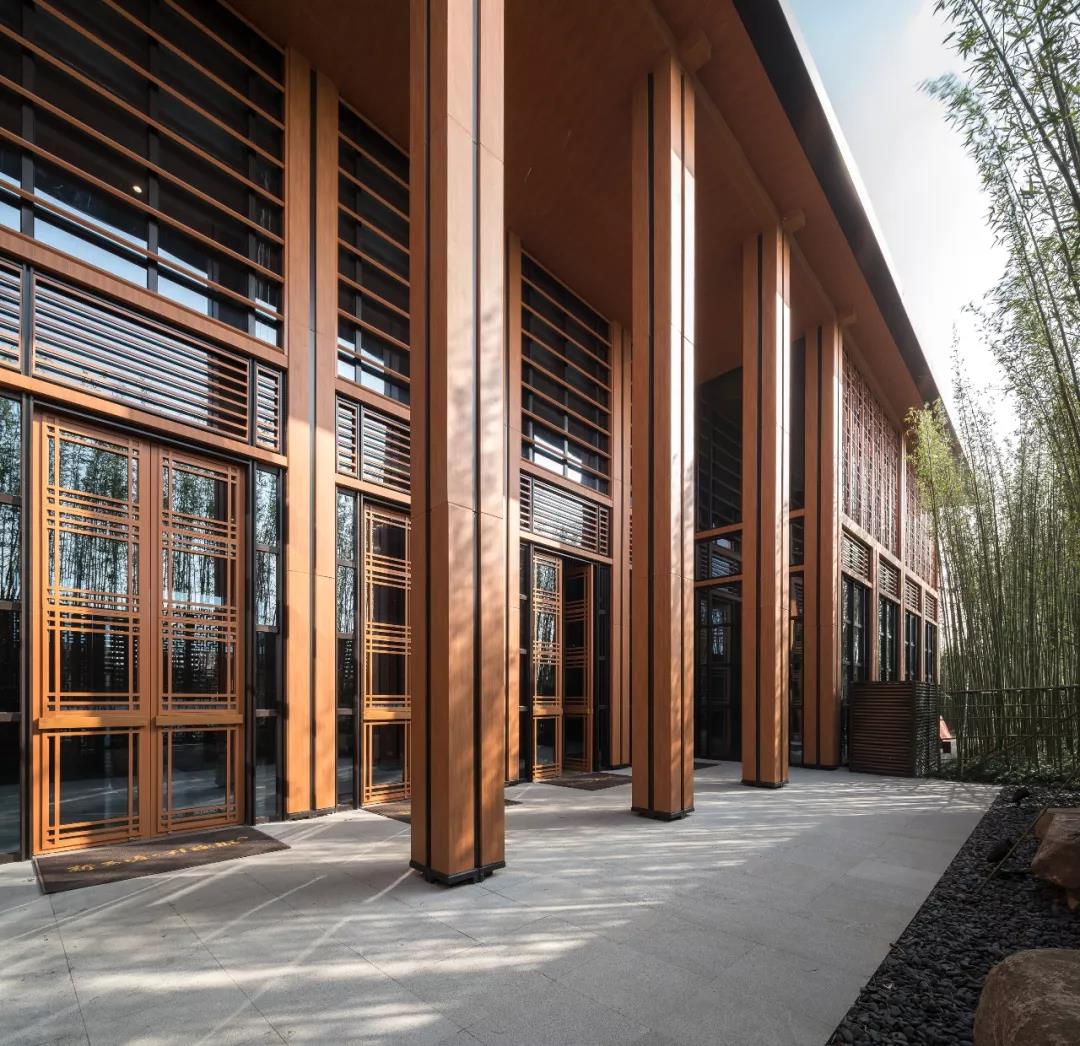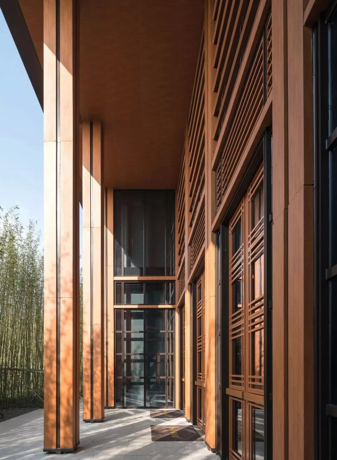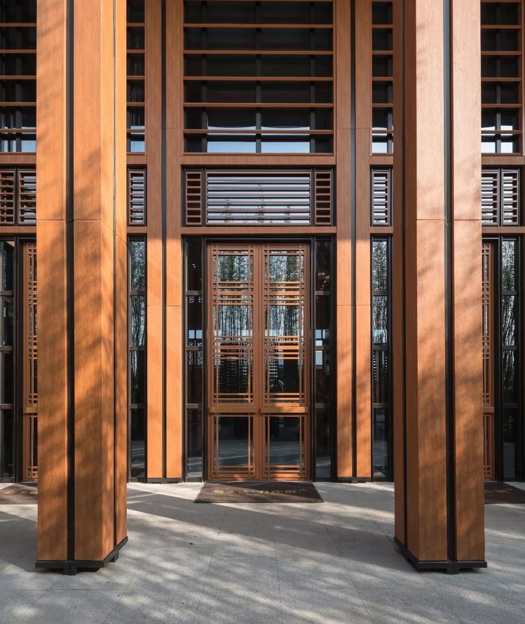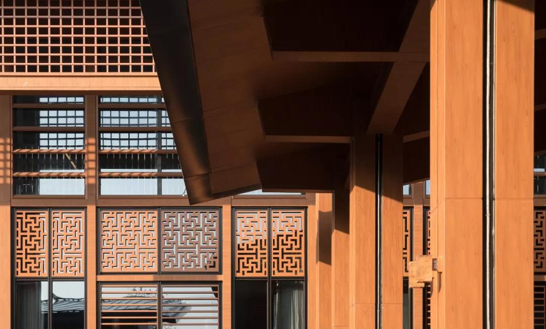 精致的金屬花格和百葉格柵的形式來演繹傳統建筑漏窗,寄托著人們對傳統文化的記憶。