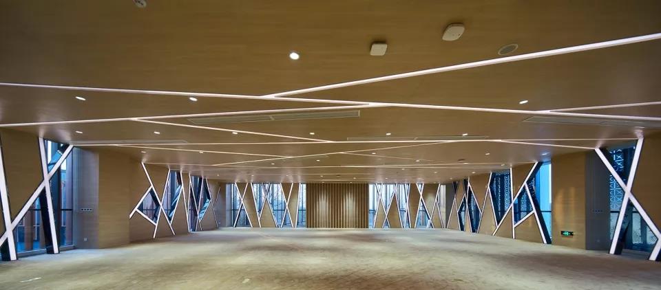 展廳內部墻面由木質表皮與玻璃墻面虛實交替