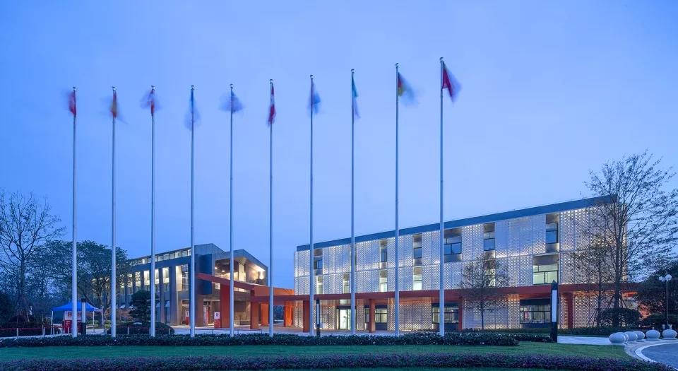面對建機場改造項目,設計師并非修舊如舊,而是選擇通過工業設計的手段來解決世界工業大會會址的實用需求。所有人對這里的第一印象必然逃不開工業二字。極富質感的表皮與肌理,鮮明的色彩沖擊,現代化的立面表達……一切元素與其作為世界工業設計大會永久會址的實用功能與設計初衷相得益彰。