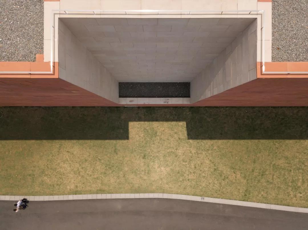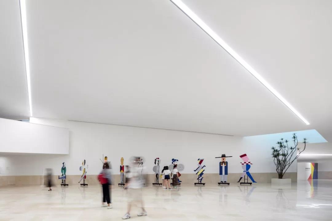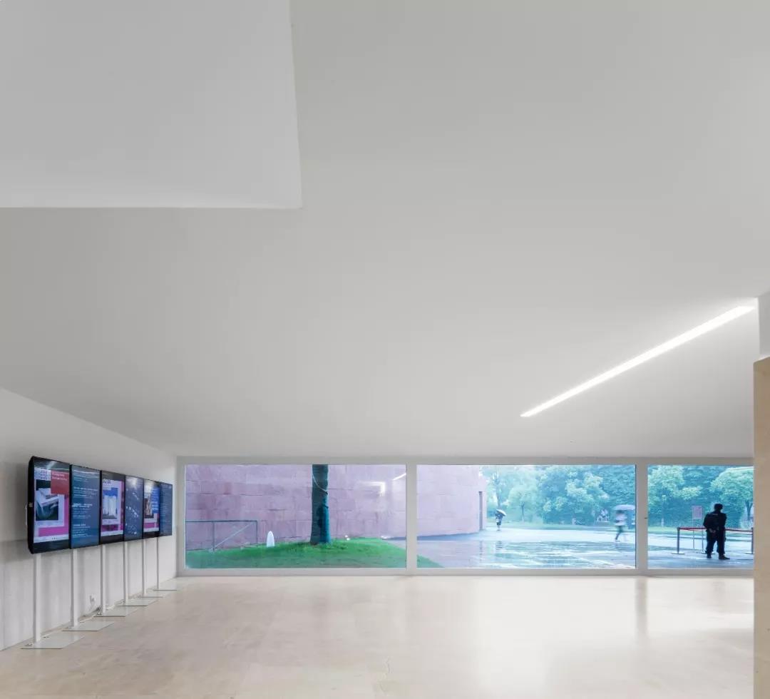 博物館的各項室內功能設施分布在了不同的樓層。 而這種有意識的開口設計將建筑周圍的景觀都納入到了這個開口的框架之中