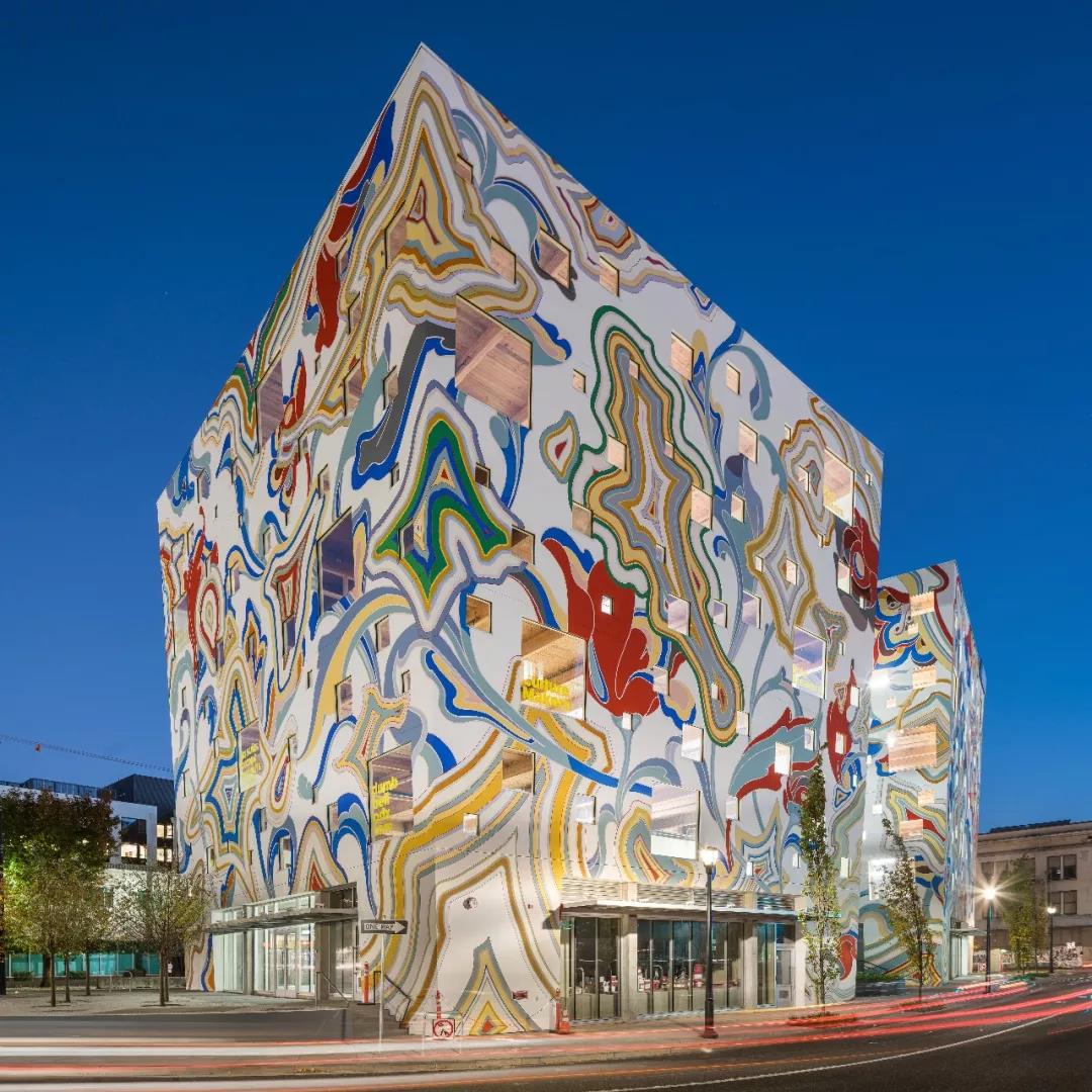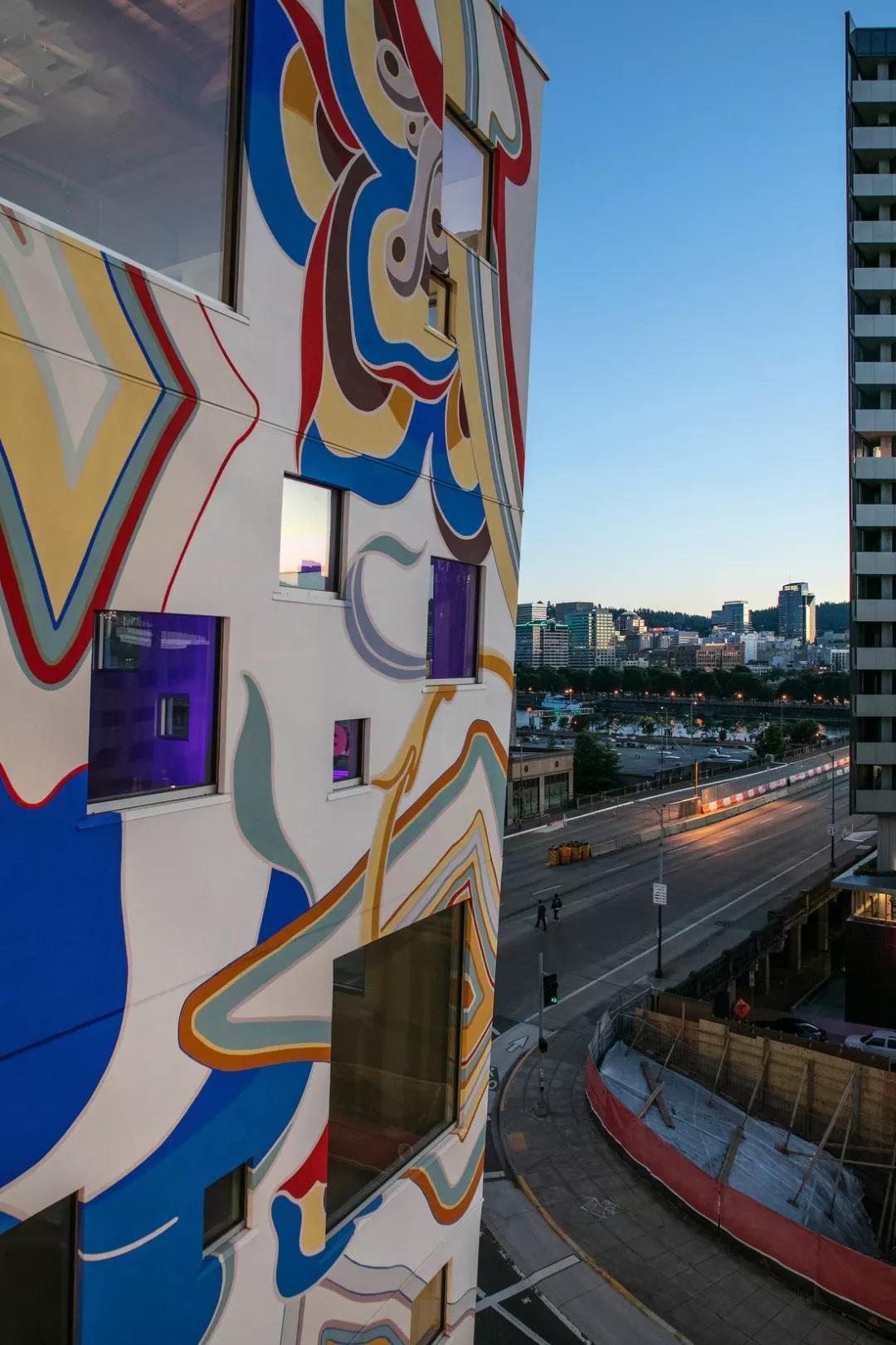 這棟多功能寫字樓名為“金發啞鈴”,是 FFA 和 Guerrilla 合作開發的項目,由詹姆斯·簡(James Jean)創作。這棟帶有零售層的寫字樓位于伯恩賽德橋頭堡開發項目的中心地帶,是波特蘭不少有趣的新建筑的所在地。