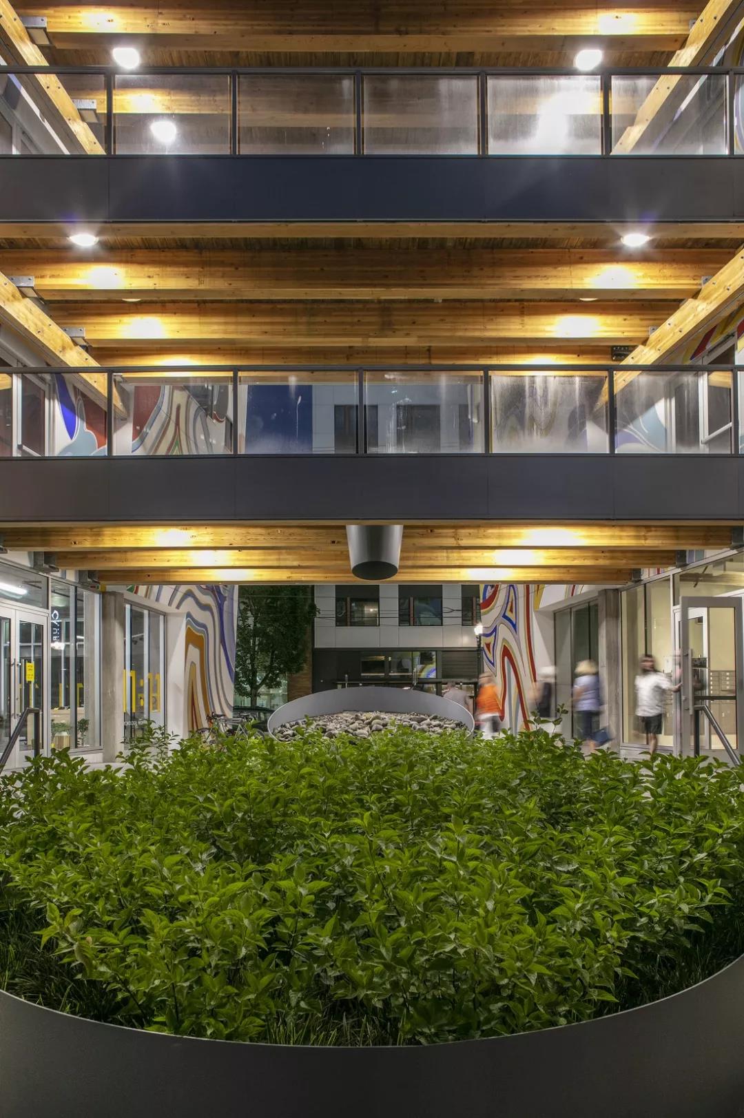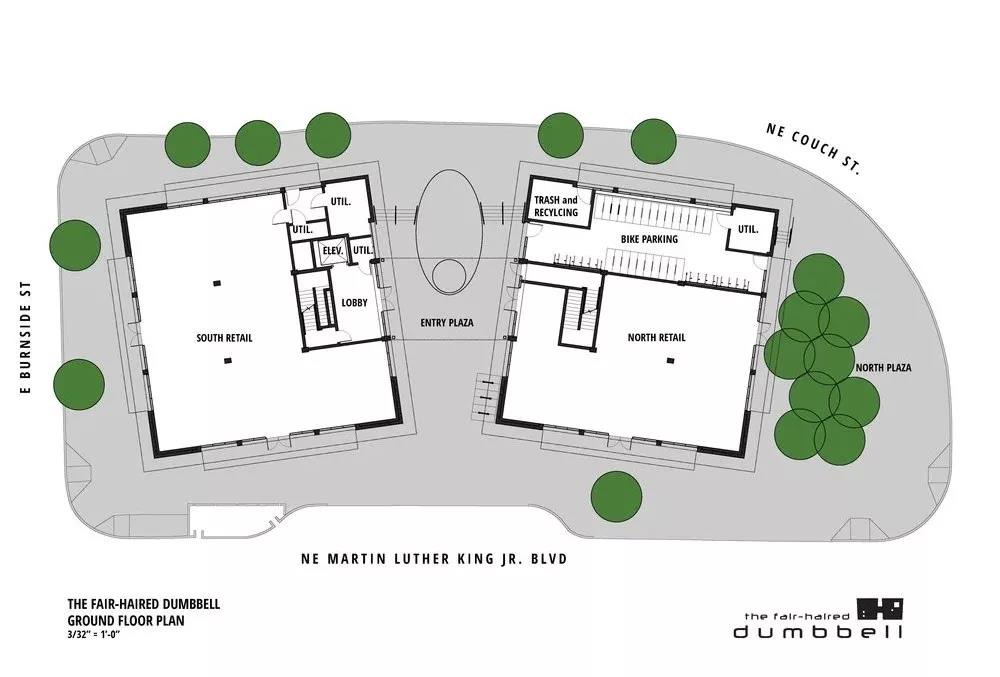 由于沒有立面是相同的,租戶和游客都會通過不同大小的窗戶欣賞波特蘭的許多角度。在一樓,大廈以獨特的零售產品和創造性的景觀作為社區的補充。