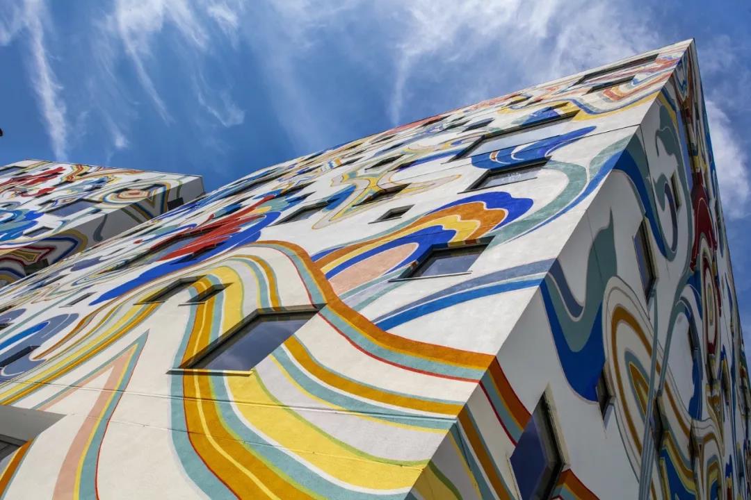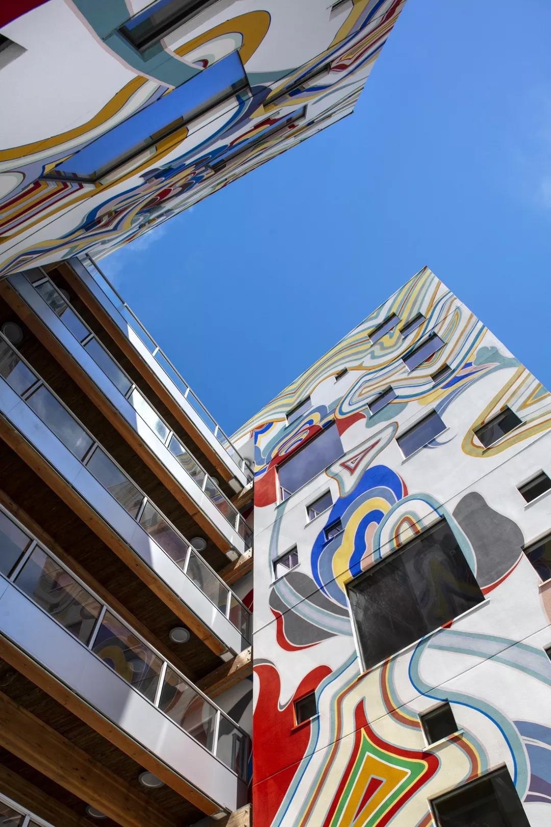 該項目由兩座傾斜的六層塔樓組成,在八個立面上都覆蓋著手繪的原創藝術品。每一層,天空之橋連接著4000平方英尺(約371平方米)的鏡像辦公空間,在那里工作的創意公司可以靈活地建造自己的樓層,滿足自我的需求。