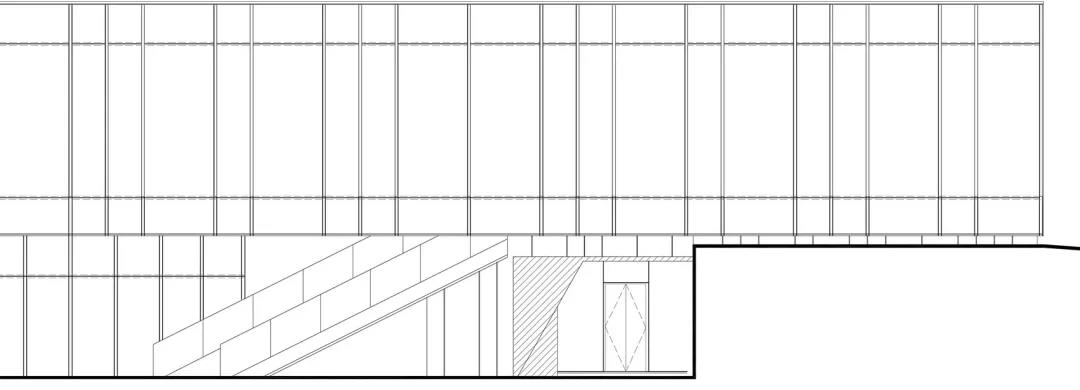 因此,建筑師遵循“意義的簡明”不如“意義的豐富”的思考,將建筑的設(shè)計拆解為每一個場景的設(shè)計,而拒絕將其風(fēng)格形制進(jìn)行簡單的概括統(tǒng)一。比如在入口雨蓬處就大膽應(yīng)用了不規(guī)則折線形木紋板,作為入口空間上強(qiáng)有力的對景元素;建筑南側(cè)延續(xù)了旁邊的公共綠地,首層大部分埋于草坡之下,并且巧妙地隱藏了一個小巧精致、自然氣息濃郁的庭院,與北側(cè)清晰明了的空間關(guān)系形成了鮮明的對比。