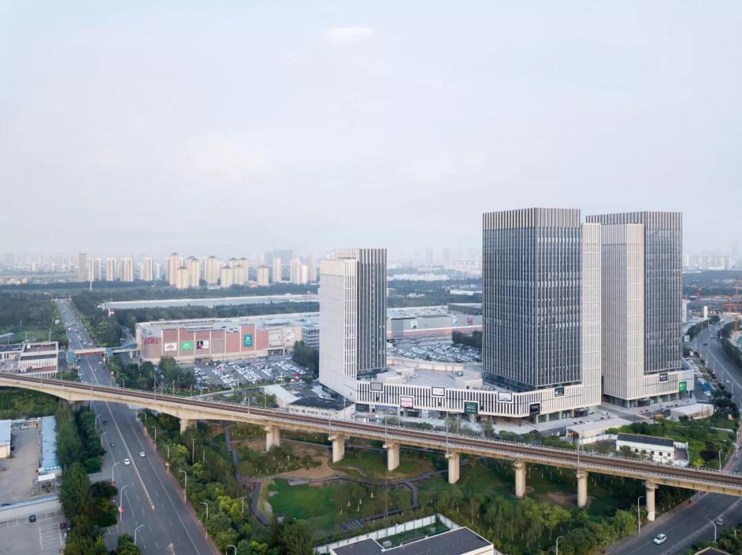 項(xiàng)目距離外環(huán)線500米綠化帶340米,距離南運(yùn)河華僑城水街800米。東側(cè)有寬廣的停車場(chǎng),北側(cè)京滬高鐵高架從地塊邊界通過,高架下已建成一處棧道公園。項(xiàng)目東側(cè)與停車場(chǎng)之間退讓出一個(gè)半圓形廣場(chǎng),在建筑體量圍合之中,成為本區(qū)域最大的開放空間,容納多種商業(yè)活動(dòng)和市民文化生活。項(xiàng)目北側(cè)建筑立面,具有棧道公園綠地景觀。