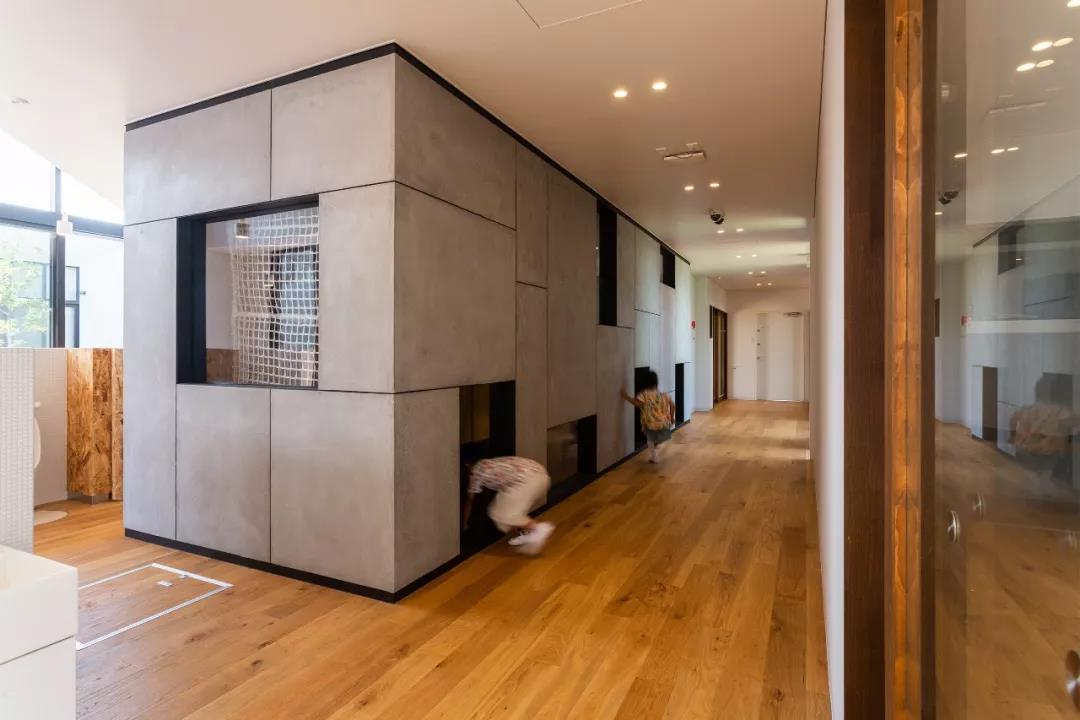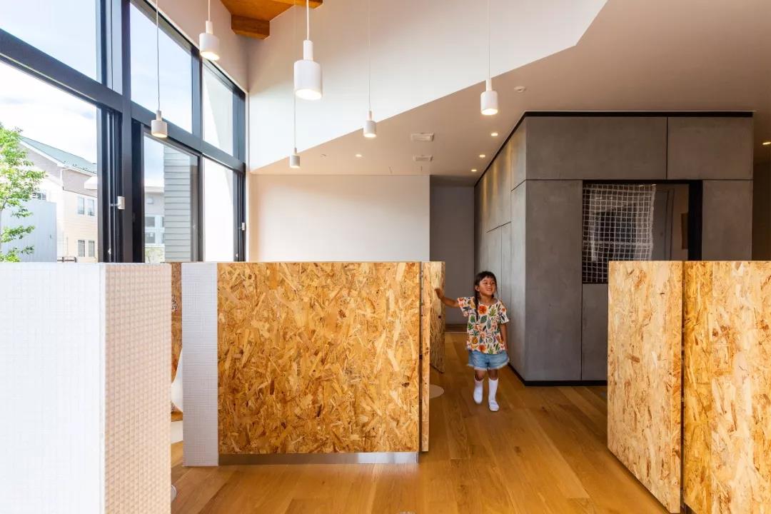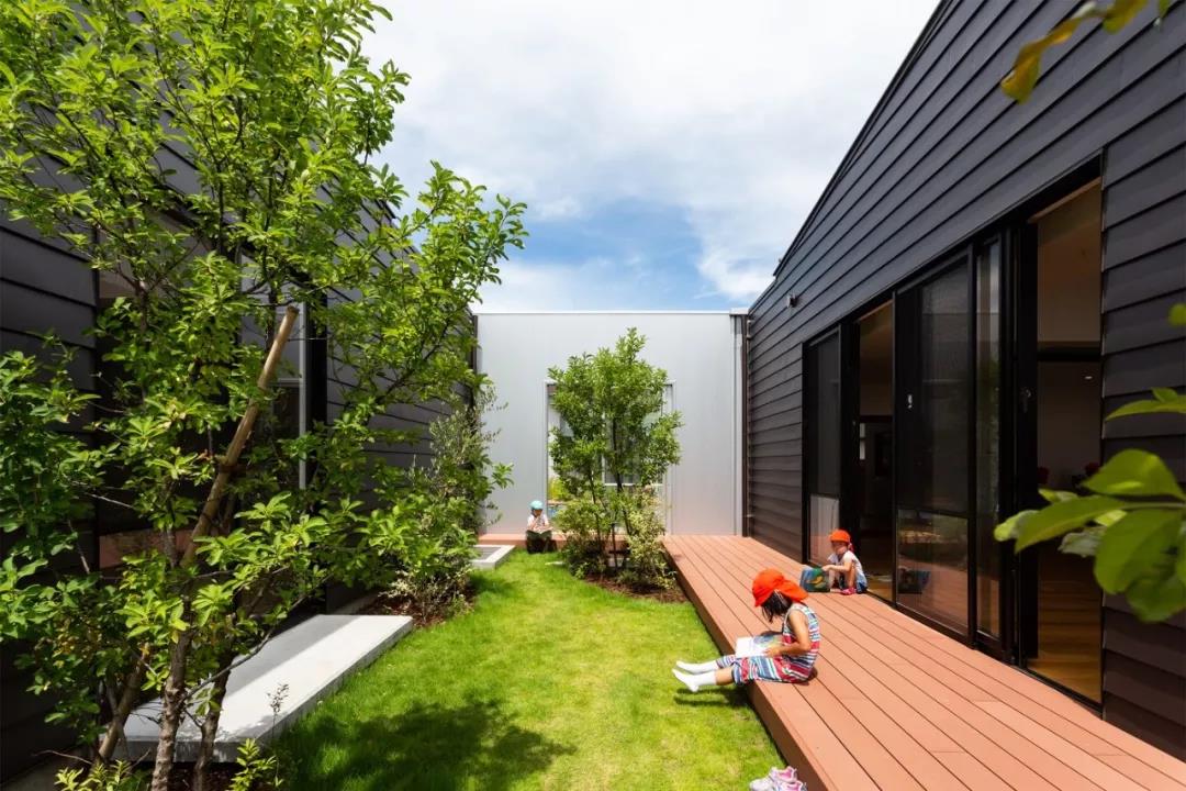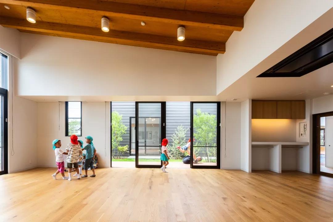 第一種方法是設置很多空白。單層木結構建筑,充分利用場地面積,到處都有一些不同于北側的建筑布局和南側花園的可以游戲的空間。通過這樣的計劃,制造出很多孩子看不到前方的空隙。但是這樣的小空間會讓他們有好奇心,發揮創造力。