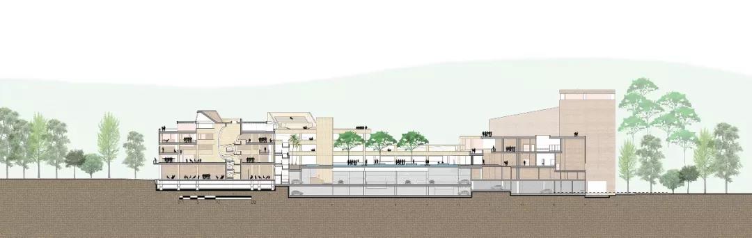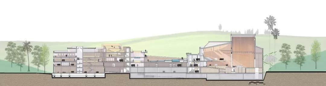 操場作為中心區(qū)域及建筑其余部分的交匯點,對建立社區(qū)與現(xiàn)存地形間的密切聯(lián)系極為重要。景觀設計豐富強化了主要生態(tài)結構,并為城市帶來新的特性與氛圍。