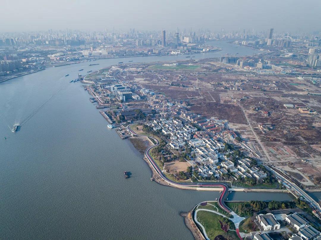 東岸從楊浦大橋綿延至徐浦大橋,每段岸線周邊的城市環境都有差異,在三林地區保留了較為自然的岸線,周邊建筑也以新中式為主,對岸仍保留有大片的工業建筑。