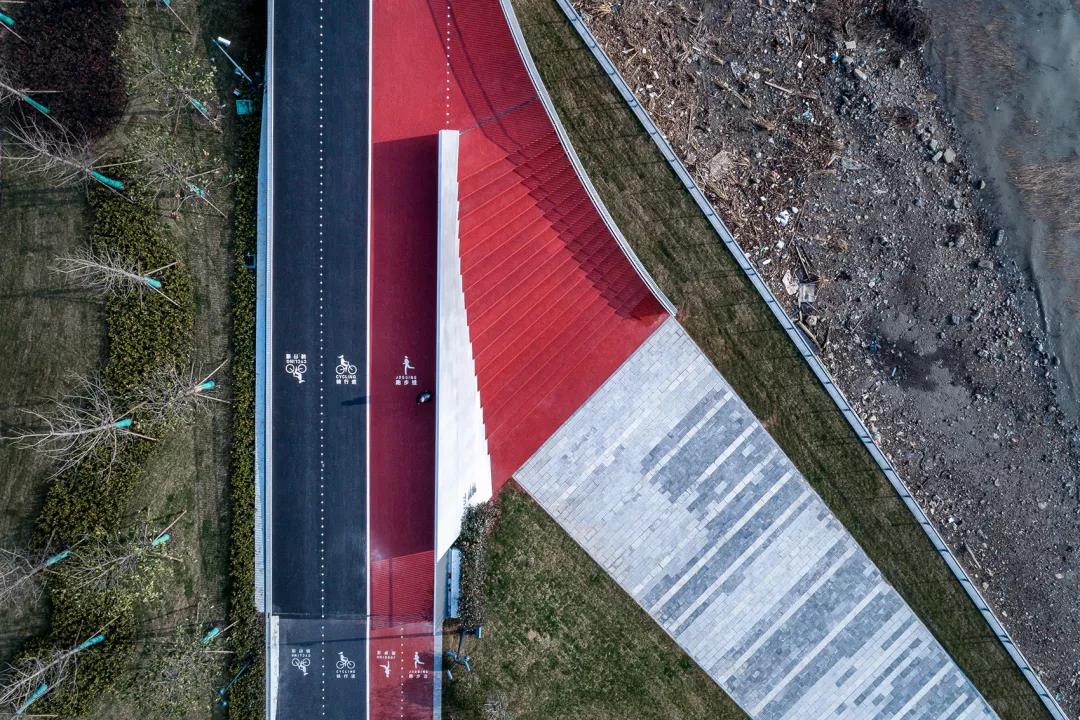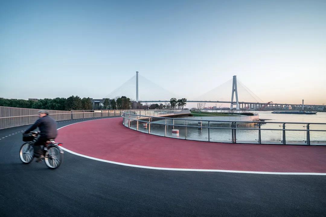 以三林北港橋為例,直線型的橋身直接連通南北兩岸,但是在橋頭和橋尾逐漸平展出兩翼,直至形成與橋身融為一體的大臺階,自然地銜接橋前的景觀廣場。我們也希望從橋身延展出來的空間能提供另一種進入的可能,另一重體驗濱江的視角,也能承載更多樣的公共活動。
