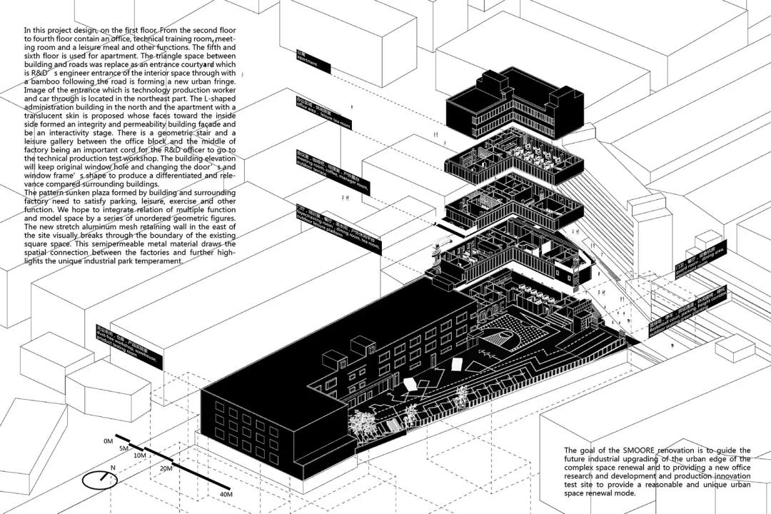 SMOORE簕竹角工業園區項目改造目標是引導都市邊緣未來產業升級的復合型空間再更新,旨在為新的辦公研發及生產創新試驗場所提供合理獨特的城市空間更新模式。
