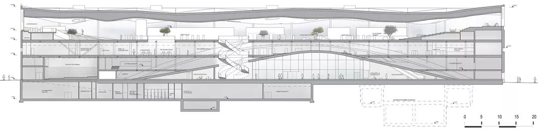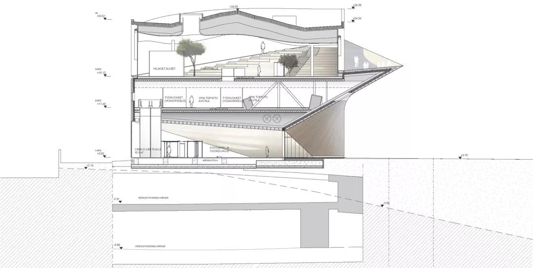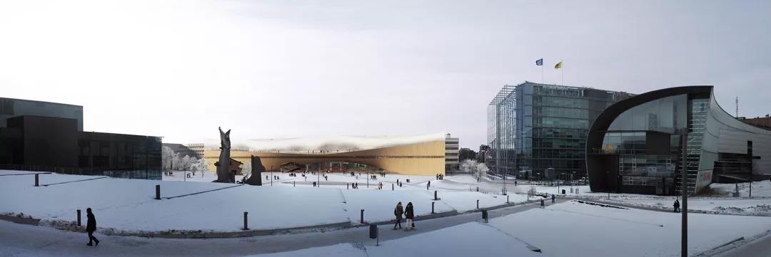 設計利用拱形元素來吸引人們使用不同的功能空間。最終的建筑呈現為一處具有啟發性且功能強大的場所,為赫爾辛基和T??l?nlahti區的城市生活注入了新的活力。