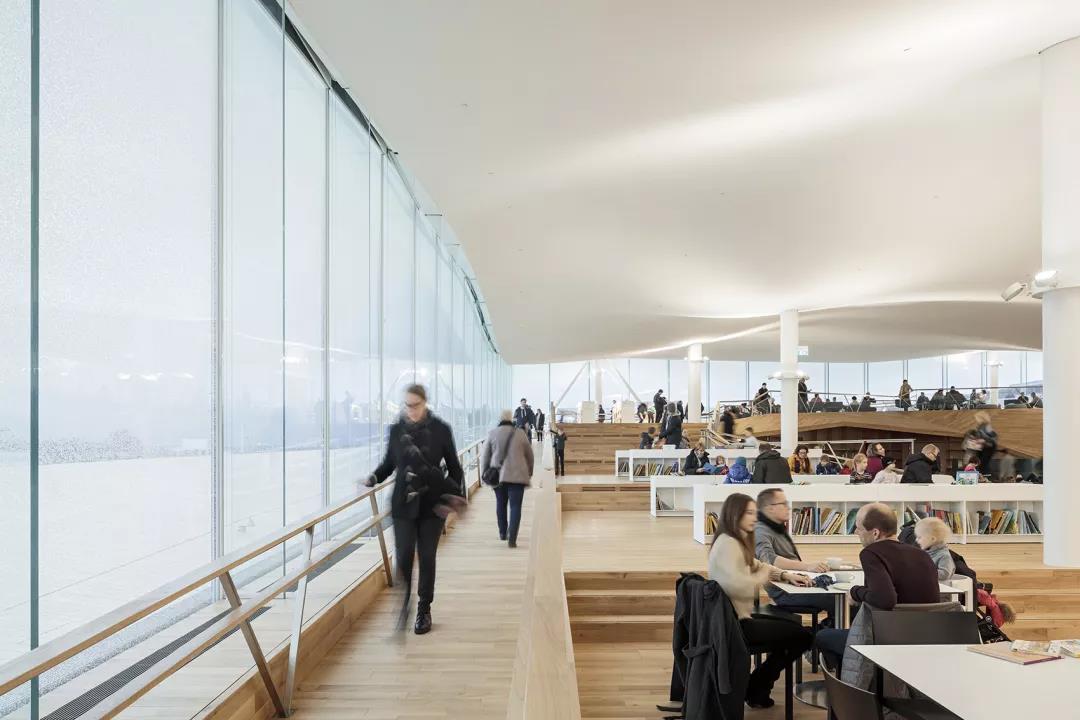 在這里,當代圖書館的強大功能與先進技術帶來的種種可能性發生了精彩的碰撞。安靜平和的氛圍使來訪者能夠沉下心來進行閱讀、學習、思考和放松。樓層的高度更帶來360度無阻礙的城市視野。