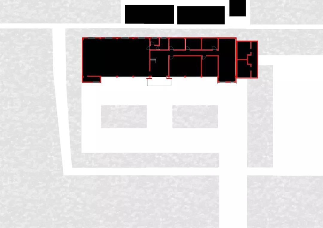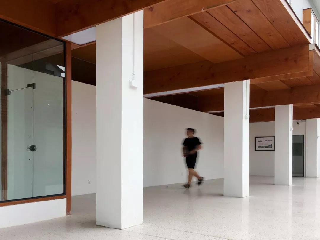原建筑北側有一排低矮的民房,和舊大樓之間有一條三米寬的巷子,極少有人通過。改造通過把建筑背面首層墻向建筑內側移,讓街道走進建筑,將民房和墻圍合成尺度宜人的檐下空間,新空間界定打破了原來建筑的邊界,產生了一種更為復雜的空間知覺。